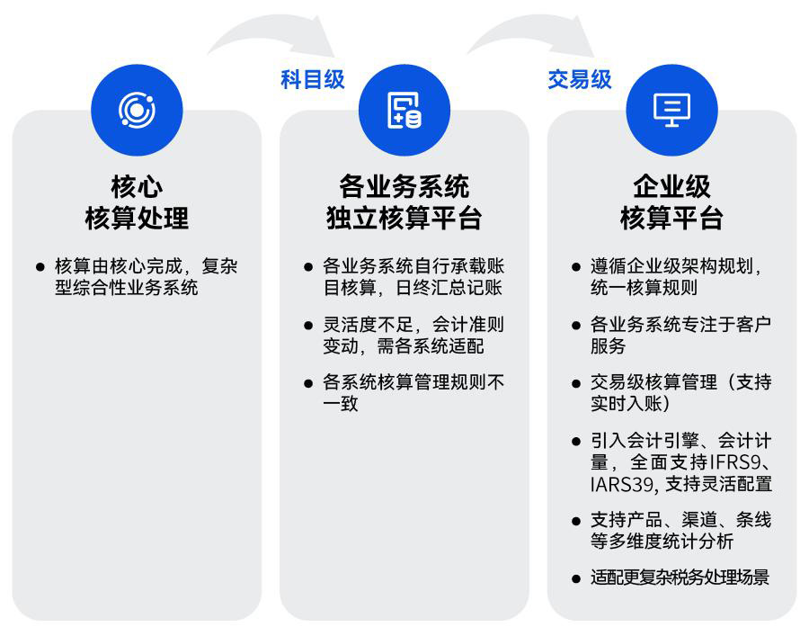 两个银行在启动项目前,均面临着一些核算方面的问题或困难:核算过程交互过于复杂、稍有变动改造耗时;原有系统总账模块功能单一或分散、数据粒度过粗,无法实现期后事项追溯调整、关联交易识别、合并抵销分录处理等功能;核算体系运行稳定性不足,且无法处理快速增长的交易量。