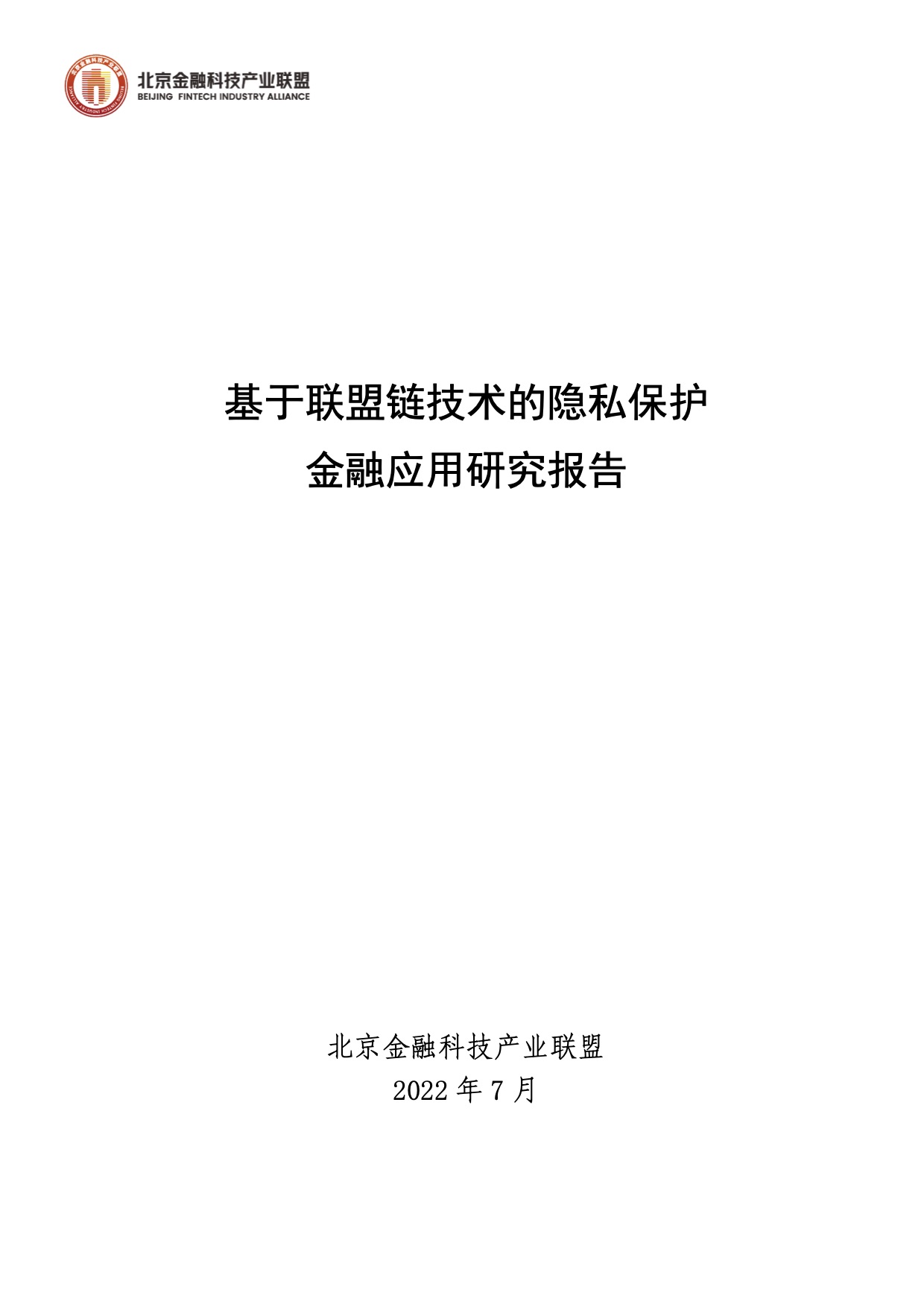 北京金融科技产业联盟《基于联盟链技术的隐私保护金融应用研究报告》