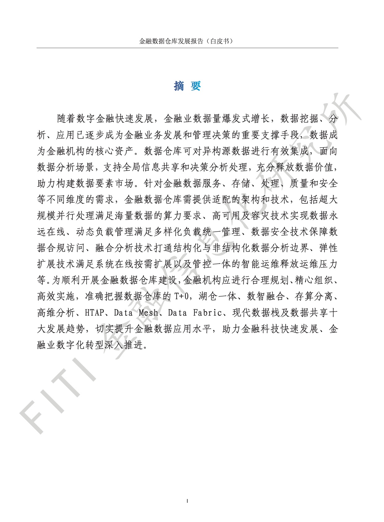 金融信息化研究所《金融数据仓库发展报告(白皮书)》