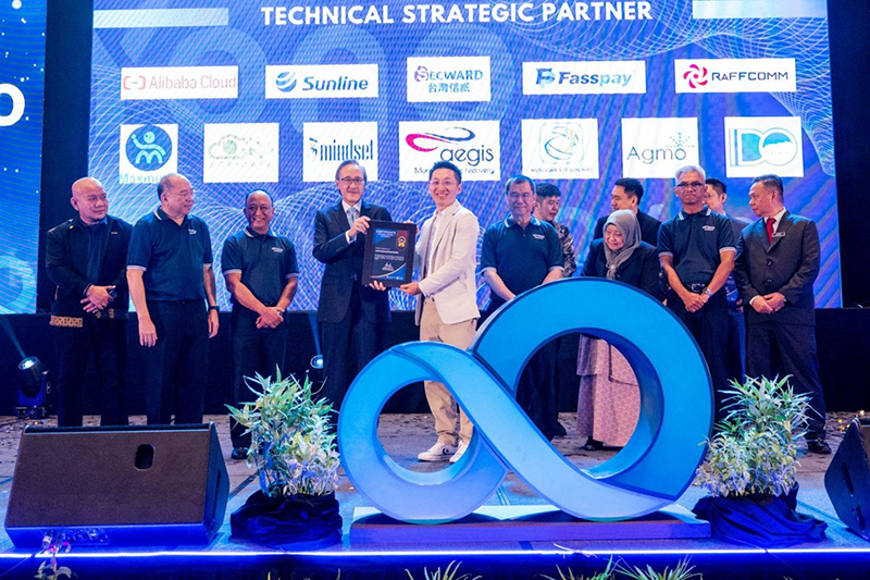 图1:沙巴州财政部长YB Datuk Seri Panglima Haji Masidi Manjun,向米兰体育海外销售总裁周宏宇颁发了技术战略合作伙伴证书,见证者有沙巴信贷公司首席执行官George Taitim Tulas和沙巴信贷公司主席Datuk Seri Panglima Dr. Yee Moh Chai