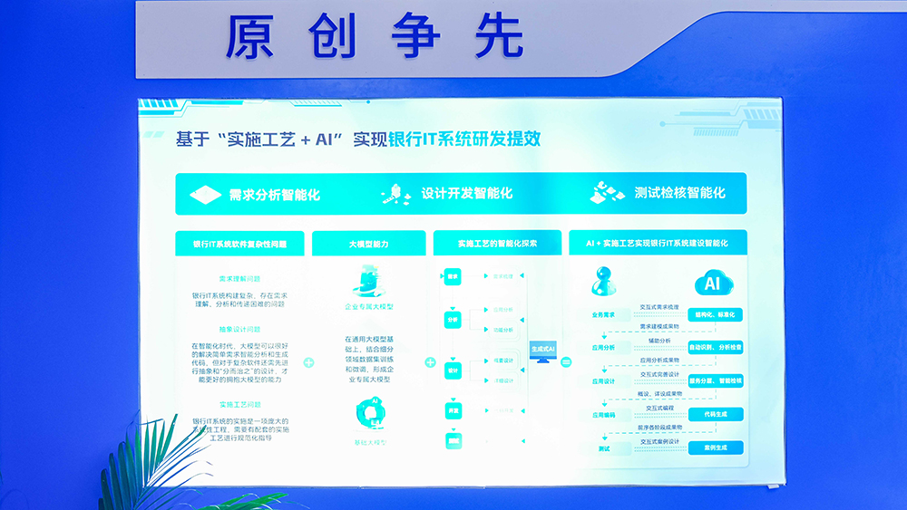 随着人工智能时代的来临,米兰体育认为未来软件工程将向着智能化编程、AI大模型的方向进化,并创新探索出 “实施工艺+AI”这一前沿成果。通过将传统业务需求转化为结构化的数字需求资产,实现了从传统代码驱动到数字资产驱动的转变,同时利用生成式AI技术在各个研发阶段提供智能辅助,助力银行重塑研发高效新模式,实现智能化的系统建设。