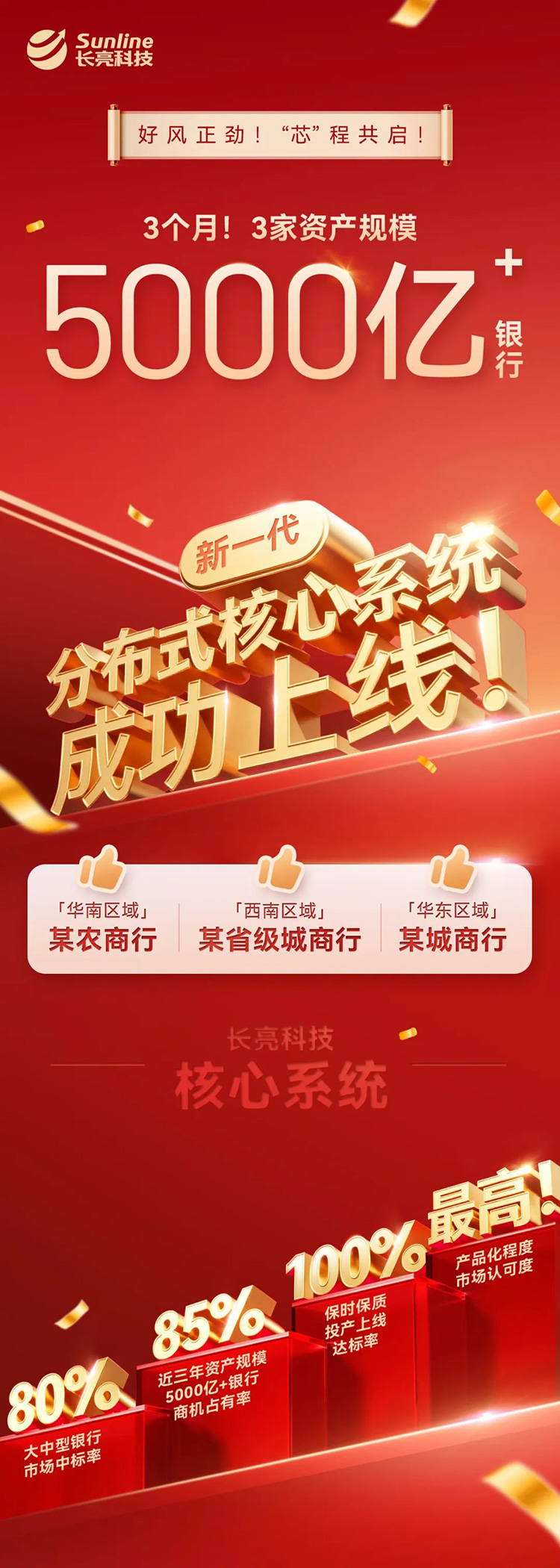 高效交付!3家5000亿+规模银行新核心系统成功上线!