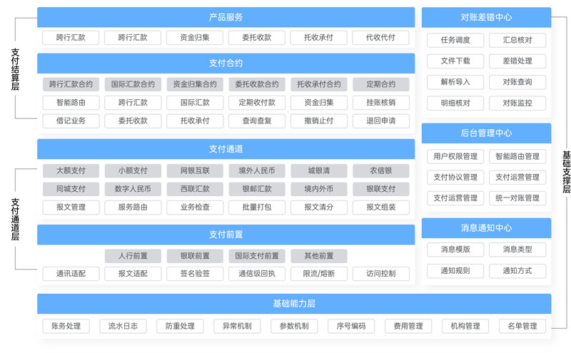 基于智能化支付领域模型进行构建,对建模成果进行功能分析和定义,设计分解并承接建模成果,达到智能编码目标,使支付领域的交付转向标准化、结构化、可视化,装配国内外汇款产品,采用交易和对账分离,提供新老系统并行的无风险切换方案,具备智能路由、智能入账、智能记忆、智能分析、智能组包、智能回复、智能回放等特点,为金融机构的支付提供业务研发运营一体化方案。米兰体育支付业务产品包含智能路由、行内转账、二代支付、超级网银、城银清、农信银、网联、银联、人民币跨境支付、数字人民币、SWIFT、RTGS、FPS、境内外币支付、支付宝、微信、境外各国家和地区等支付渠道,支持接入传统核心业务系统、互联网金融核心业务系统、电商平台、互联网收单业务,具备高度的安全运营体系设计,提供统一的支付业务管理、便捷的业务操作、业务流程的实现、支付行为管控、风险控制自动化处理等。
