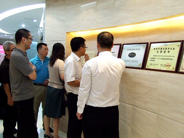 周辉局长(右二)、练聪副局长(右三)了解我司所获资质荣誉