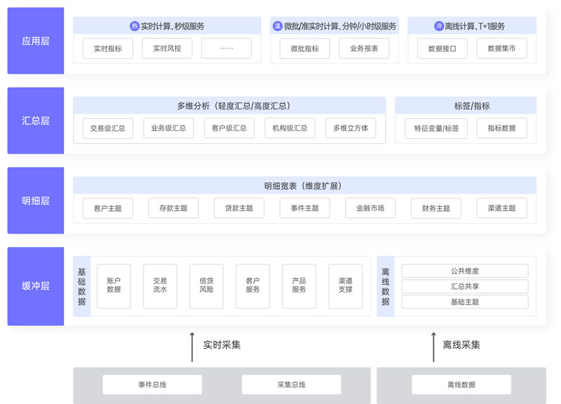 实时数据平台负责流式、微批等高时效数据的整合加工,是数据体系架构中专门用于支持对实时数据应用的数据处理区域。作为对传统批量数据架构的能力补充,解决了传统数据仓库数据时效性不足的问题,用以支持实时营销、实时对客、实时风控及实时经营分析等业务场景。