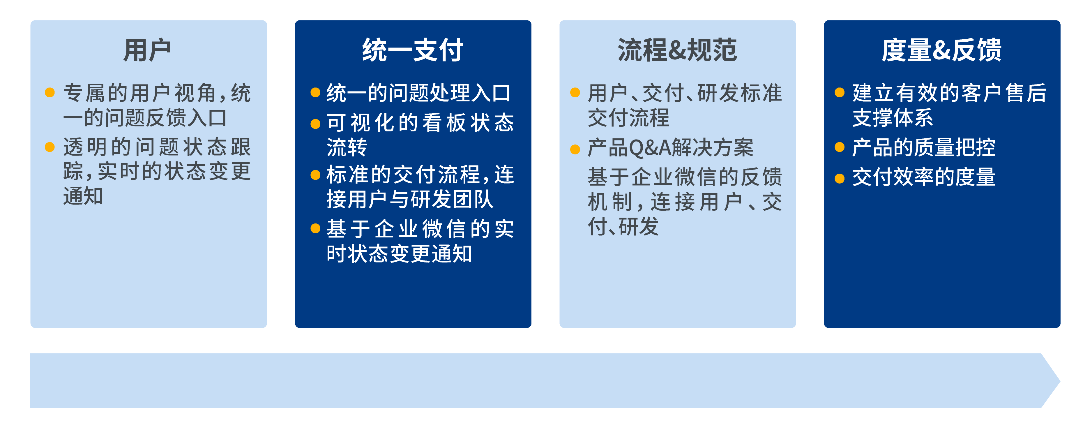 ◆实现研发与交付分离:研发只需处理交付团队分配的任务,可以安心研发产品;交付团队负责问题的生命周期管理及客户维护;