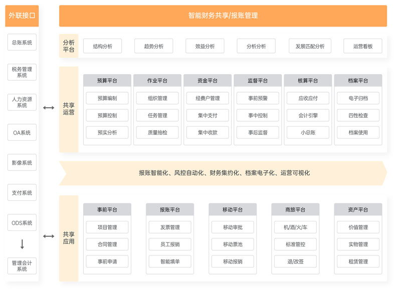 基于业财融合视角下的场景化财税管理,以数字化、智能化、移动化、自动化、多维化、合规化为核心价值,并结合多年来深耕众多银行项目的实践经验,围绕银行的业务诉求、组织结构、项目建设等特点,提供成熟、 完整、专业性的智能财务解决方案。