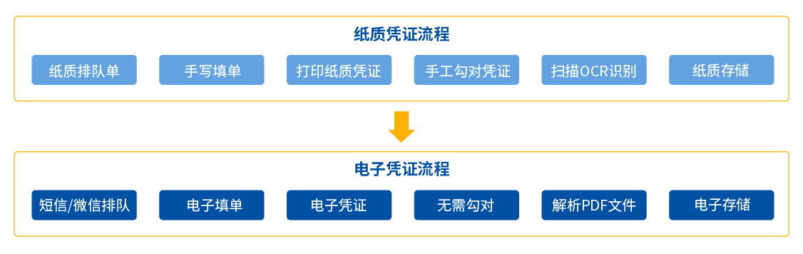 其次,在以客户为中心的理念下对前端业务进行深度优化和流程再造,实现诸如:统一客户画像、购物车式交易、向导式交易、综合签约、集中作业等流程,实现客户多笔交易一次识别、一次确认、一次验密等功能,简化柜员和客户操作,提高办理效率,提升客户体验。