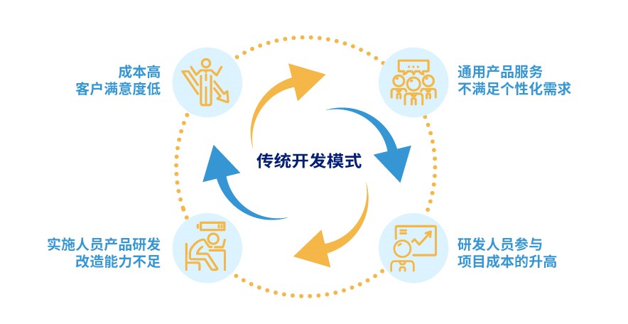 金融业激烈竞争下,客户体验为王、效率至上,传统开发模式已成为提升竞争力的掣肘因素,降低开发成本、提升效率、敏捷易上手及易扩展等成为行业首要关注点。