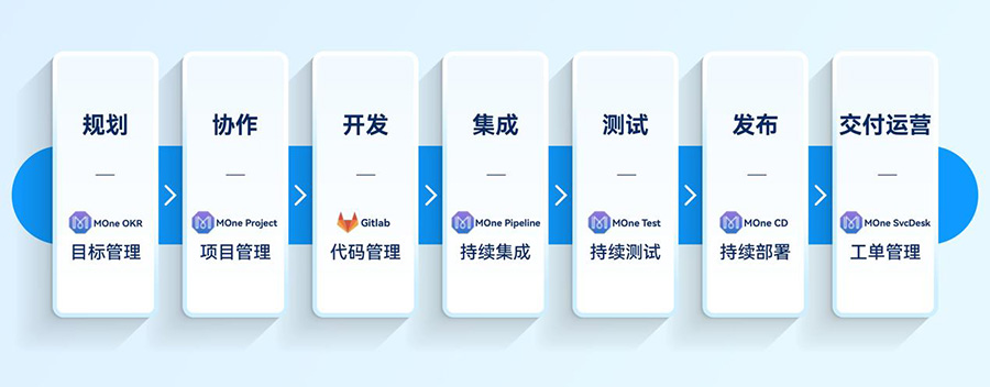 正如MOne自研发之初所被赋予的使命:帮助团队能够快速独立地开发、测试和部署代码,并且可以快速、安全、可靠地向客户交付价值,有效地提高开发人员的生产力,MOne系列产品历经众多业务场景打磨,可基于完整的工具链为各行各业客户提供一套成熟的研发效能解决方案,帮助企业降低研发工具建设成本,提高产品交付效率,实现研发效能升级。