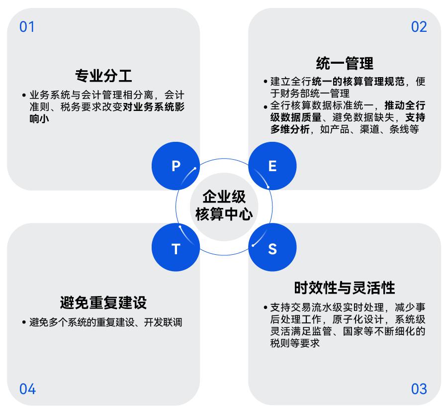 两个银行在启动项目前,均面临着一些核算方面的问题或困难:核算过程交互过于复杂、稍有变动改造耗时;原有系统总账模块功能单一或分散、数据粒度过粗,无法实现期后事项追溯调整、关联交易识别、合并抵销分录处理等功能;核算体系运行稳定性不足,且无法处理快速增长的交易量。