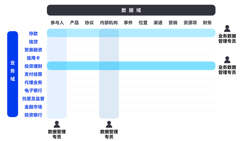 数据模型是业务人员与技术人员的接触交互点,数据主题领域、实体、属性,是数据管理的不同详细粒度。模型设计过程需要业务参与分工,根据企业规模、数据管理成熟度等,设置数据管理的角色,赋予相应的管理职责与内容,最大限度地提高管理数据质量、价值、可用性和安全性的有效性和效率。