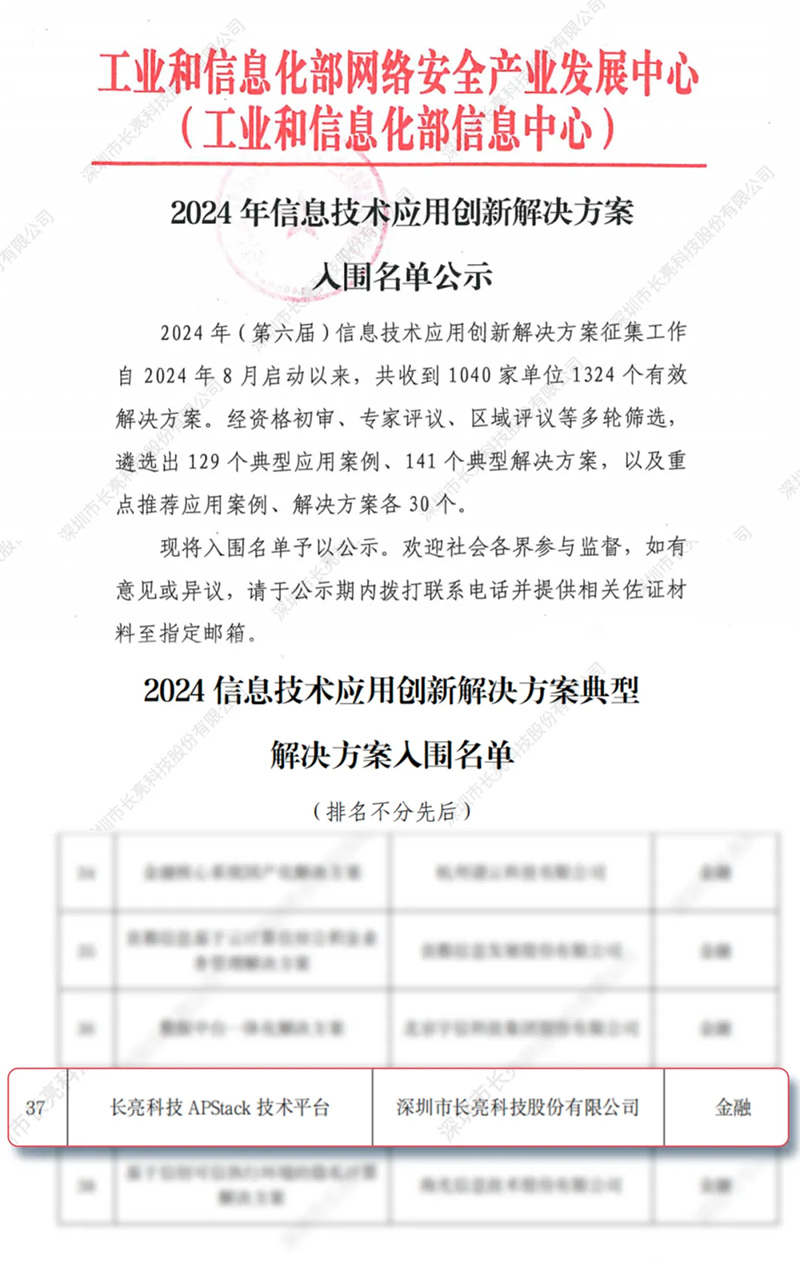 近日,工业和信息化部网络安全产业发展中心(工业和信息化部信息中心)公示了“2024年信息技术应用创新解决方案”入围名单。其中,米兰体育凭借自主研发的APStack技术平台,成功入选“典型解决方案”名单,充分彰显了业界对公司在金融信创领域技术实力、创新能力及行业影响力的高度认可。