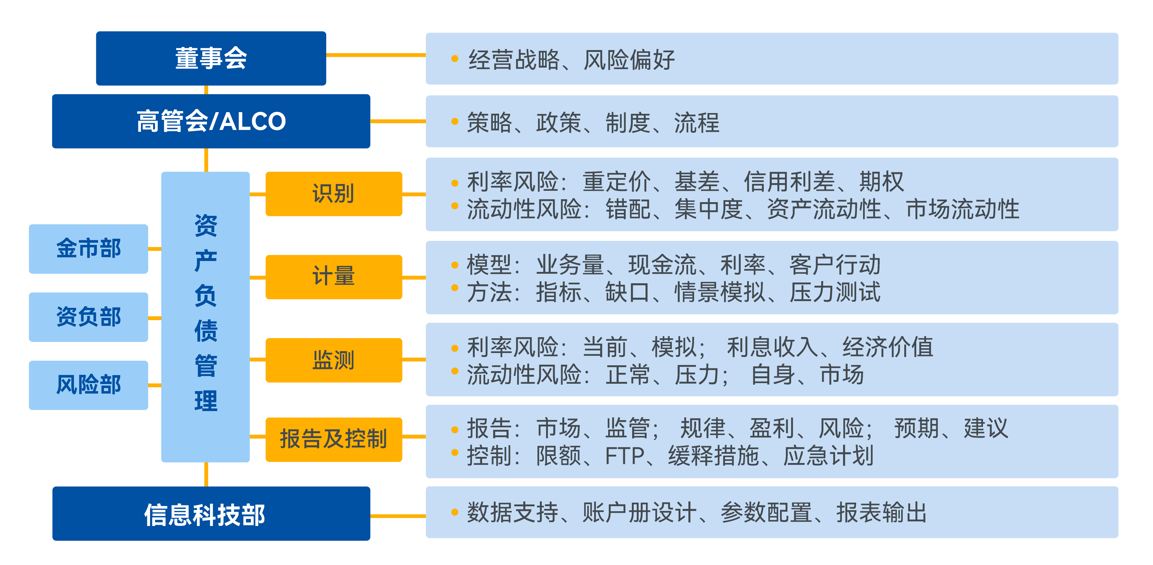 通过资产负债管理系统,商业银行可深入了解自身的资产负债结构,识别和度量流动性和利率风险,并进行主动的资产负债管理,合理规划和配置资源,资产负债管理系统是银行全面控制风险、实现短期利润增长与长期市值稳定统一关系的有力武器。