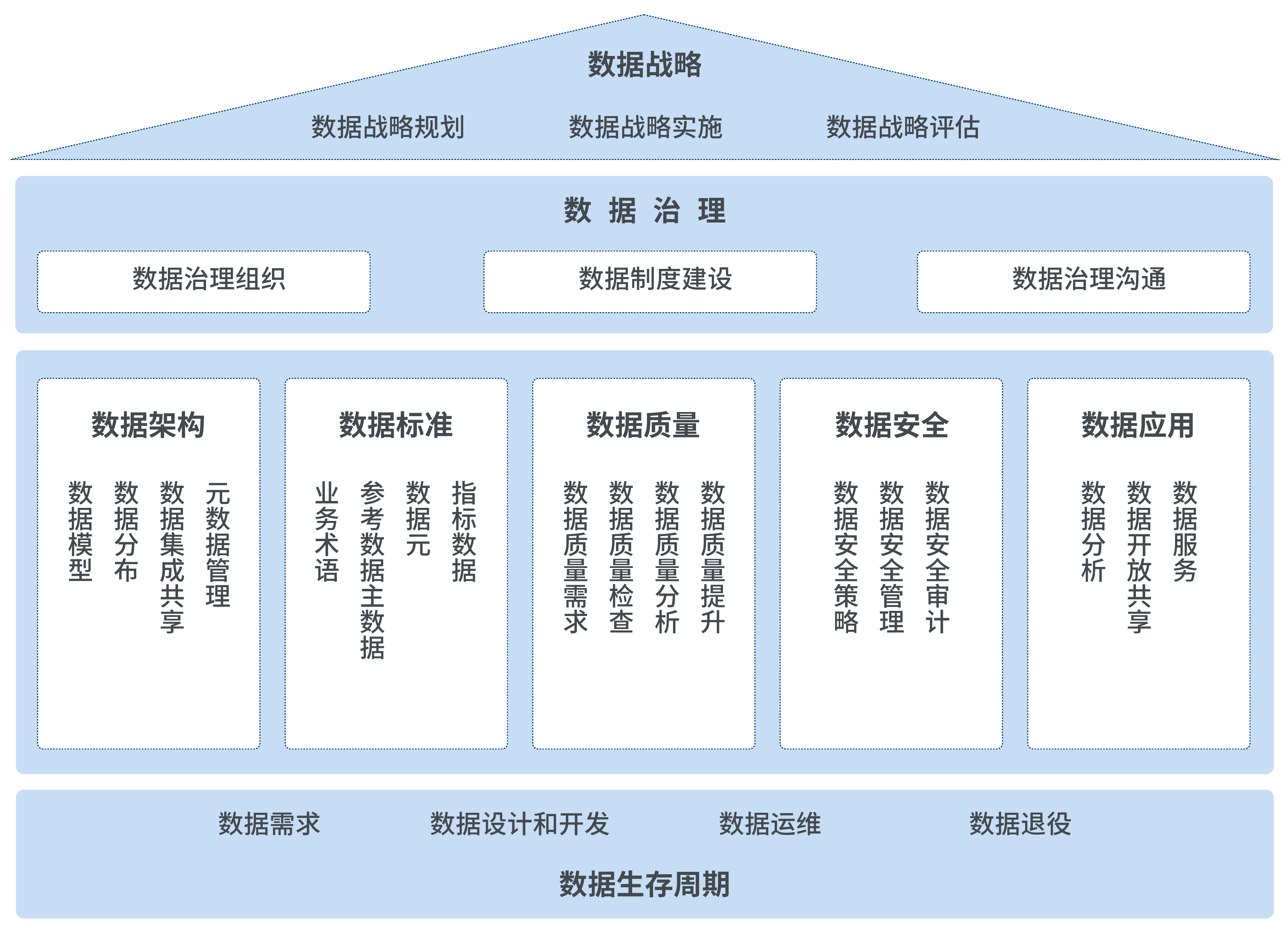 • 对企业数据数据管理能力全面评估(数据战略、组织制度、数据标准、数据架构、数据质量、数据应用、数据安全、数据生存周期)