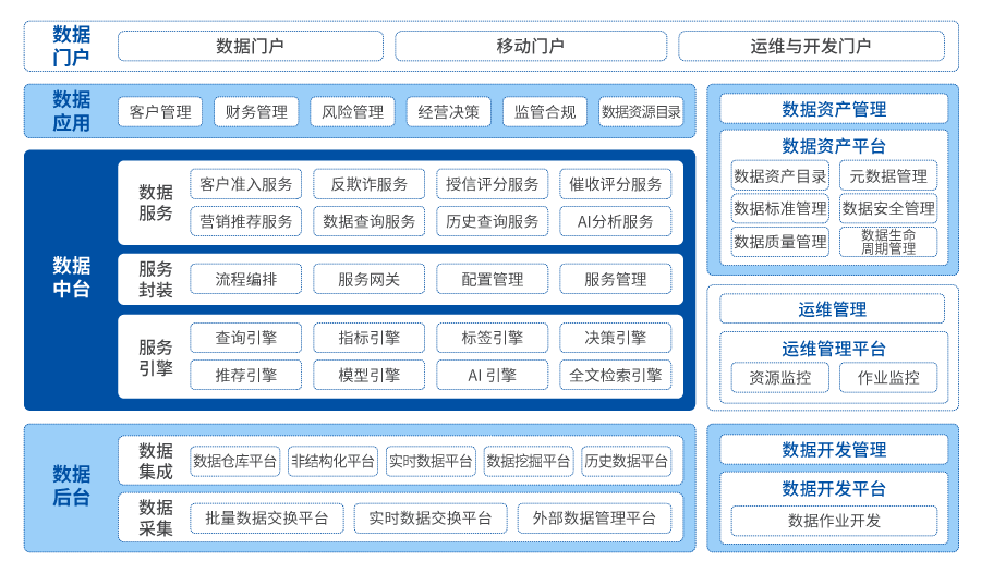米兰体育基于多年银行IT服务的经验,淬炼出一套扎根于金融业务逻辑及IT架构的数据中台方案,经实践检验,表现出强劲的市场竞争力。
