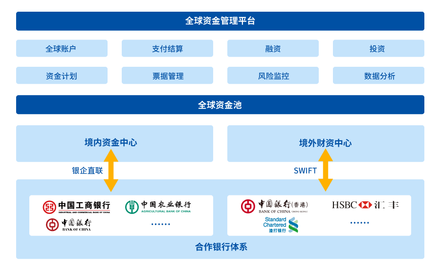 所谓全球资金管理,是指全球化集团总部对其成员企业的资金控制与管理,以便及时准确掌握海内外资金信息,统一管理境内外收付款业务,统筹调配全球资金,加强集团管控力度,有效降低跨国经营资金风险。