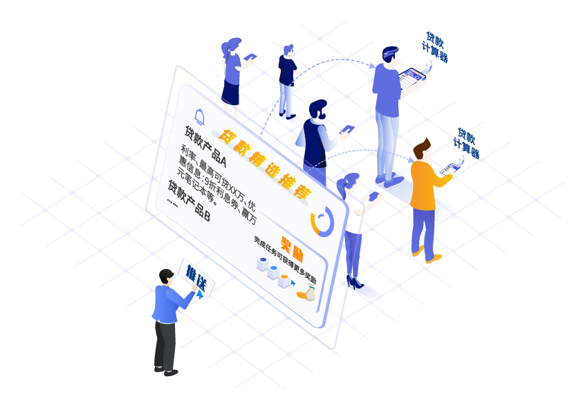 c端用户通过手机银行APP或网上银行做贷款计算器的时候,系统可秒级推送贷款类产品,如完成任务,则会立即获得相应的奖励。
