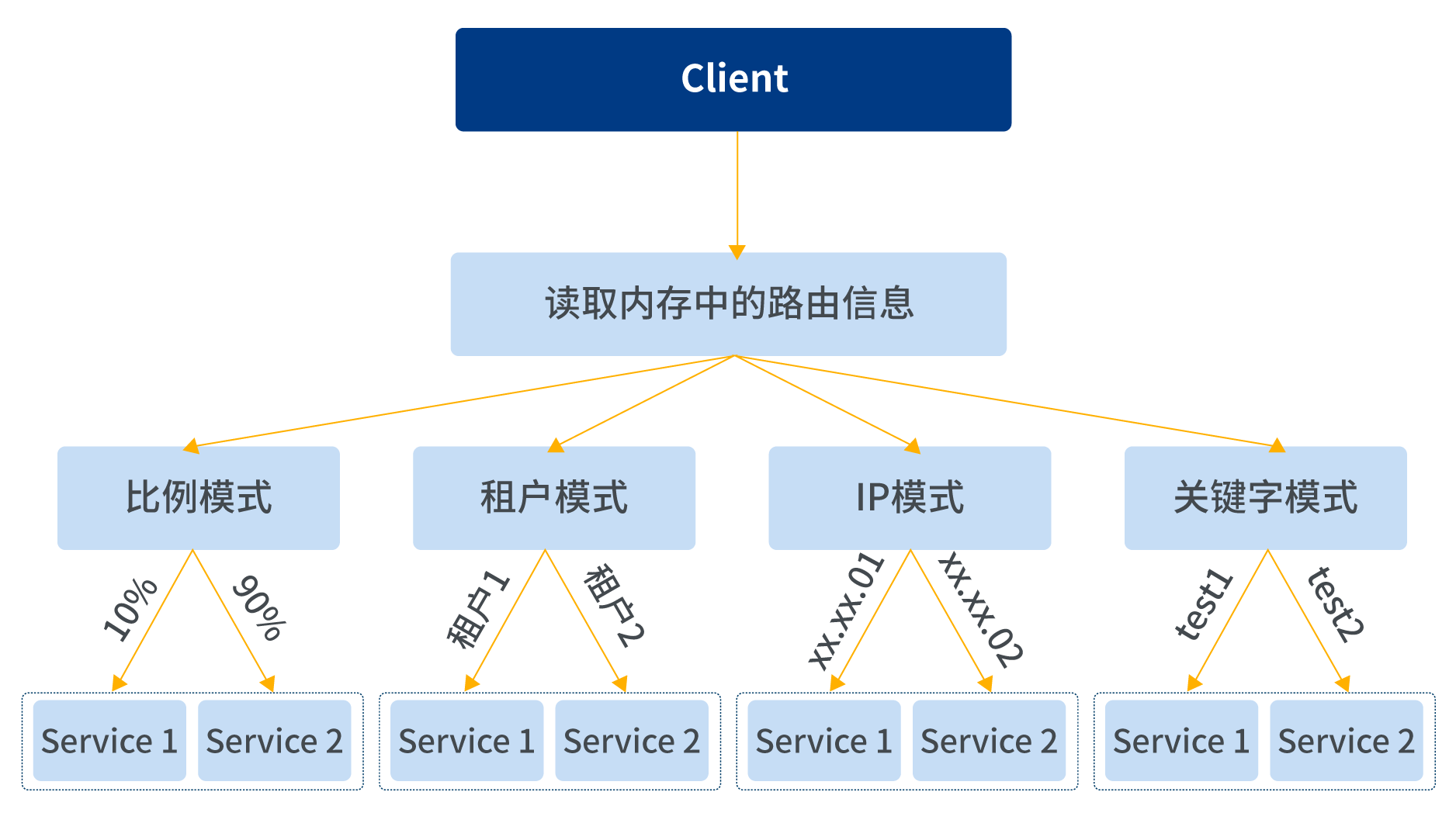 • 关键字模式:通过在请求头或者查询参数中的关键字进行路由。