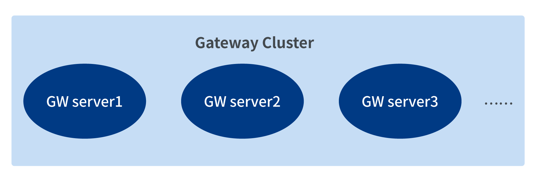 网关服务器采用无状态集群架构,一个网关集群可以包含多个网关实例,集群可以作为逻辑上的实例分类,每个实例只对应一个网关管控端,防止数据混乱。相对市面上普遍使用的物理上集群划分,这种逻辑集群划分则更好管理和维护。